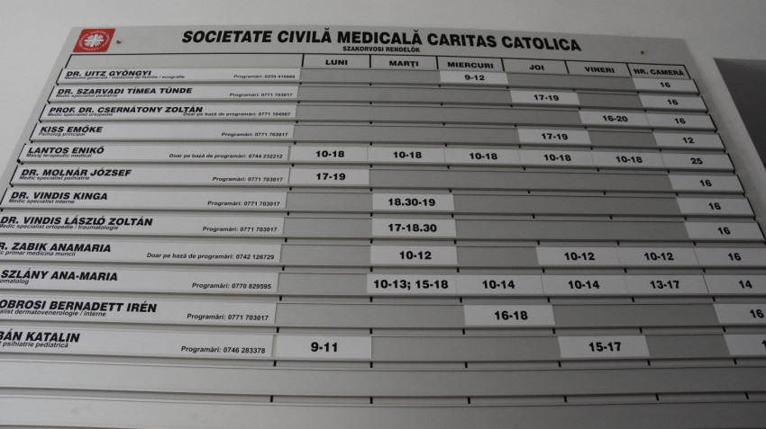 Most új székhelyen, új elgondolással és új csapattal kezdenek neki a munkának. A vizsgálatok díj ellenében történnek, de a bedolgozó orvosok vállalták, hogy a jövedelem nélküliek és a kis jövedelműek számára ingyenes vizsgálatot is nyújtanak. Belgyógyászati, ortopédiai, gyermekpszichiátriai és gyermekgyógyászati, bőrgyógyászati, pszichológiai, pszichiátriai és fogorvosi szakrendelést lehet majd igénybe venni az új központban, előjegyzés alapján. Időpontot a (0040) 0771703017-es telefonszámon lehet kérni.