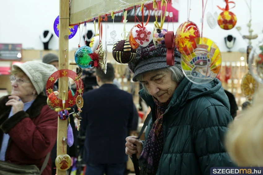 Az angyalkák és a szívecskés karácsonyfadíszek igen kelendőek szoktak lenni a jótékonysági vásárban, amelyet immár huszonharmadik alkalommal rendez meg a Szeged-Csanádi Egyházmegyei Karitász. A bevételből ezúttal is nehéz sorsú családoknak vásárolnak tűzifát télire.