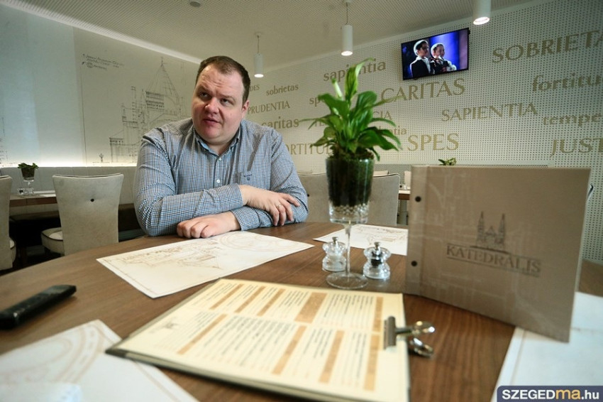 Az, hogy vendéglátóhely nyílik a dóm lépcsősora alatt, nem új hír, hiszen már a fogadalmi templom rekonstrukciójának kezdetekor szerepelt a koncepcióban, bár azt két éve még nem lehetett tudni, hogy büfé, fogadó vagy épp étterem kap helyet. Március 15-én azonban megnyílt a Katedrális; a naponta tíztől tízig nyitva tartó étterem délben és esténként más ételkínálattal és gyerekmenüvel is várja a vendégeket, a kisebbeket pedig külön gyereksarokkal várják. Természetesen teraszt is nyit majd az étterem, amelyet a Dömötör-torony árnyékában szeretnének kialakítani.