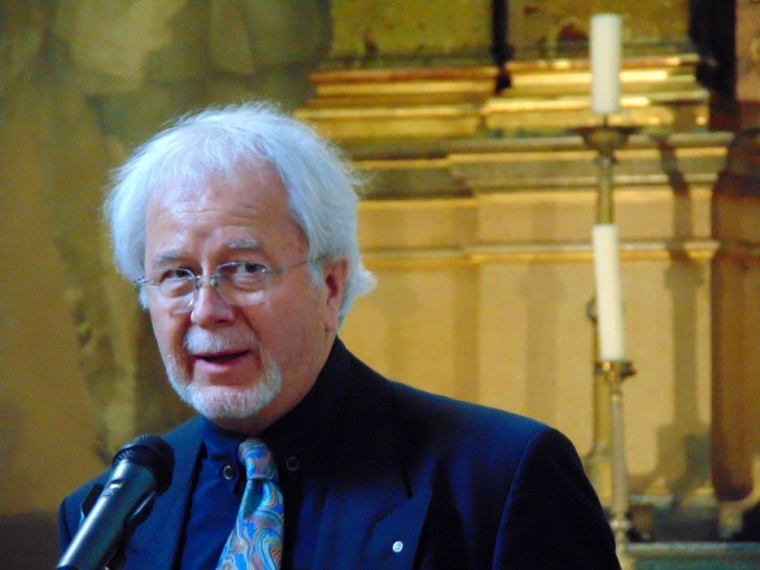 Műalkotásai megszólítják a szemlélőt. A perjel példaként említette a II. Szilveszter pápáról készült portrét (amely egyszerre utal a koronát küldő egyházfőre és népünk nyugathoz való csatlakozására is, s benne van Gizella királyné személye is, aki bajor származásúként is a magyar szent család összetartója volt mint édesanya). A Noé üzenetét hordozó kompozíciót is említette, amely hirdeti: nem leszünk örökké a bárkába bezárva, és sikerülni fog „átvinni a szerelmet a túlsó partra”. Ezekben az alkotásokban ötvöződik európaiság, kereszténység és magyarság – küzdelem, fájdalom és az élet lehetősége is.