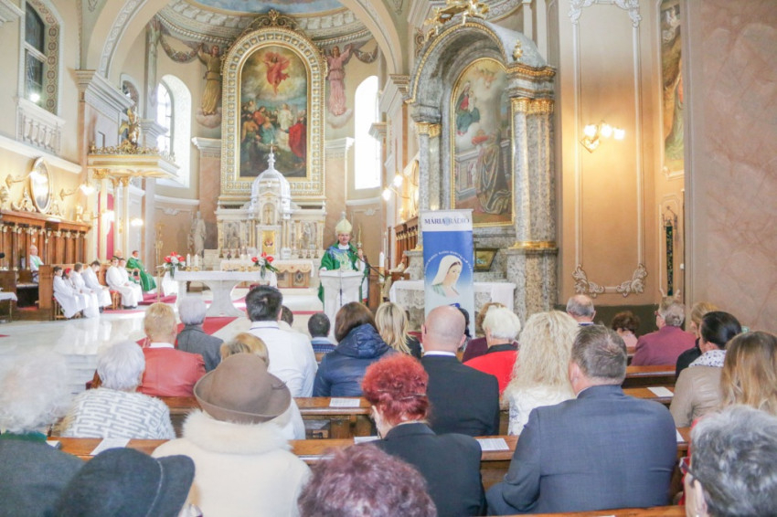 Az ünneplés a vasárnapi tizenegy órakor a szatmárnémeti székesegyházban bemutatott szentmisével kezdődött. A bevonulást követően Schönberger Jenő püspök elmondta: a Mária Rádió nagy szolgálatot tesz, hiszen az éter hullámain keresztül az imádságot, az evangéliumot, a szent dolgokat közvetíti különösen azok felé, akik ágyhoz kötöttek, nem tudnak elmenni templomba szentmisére.