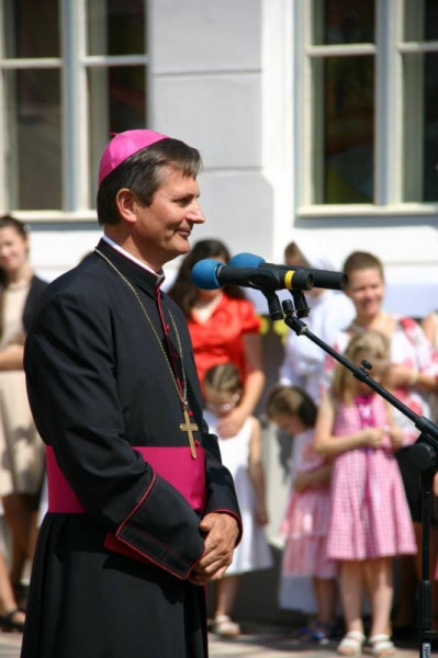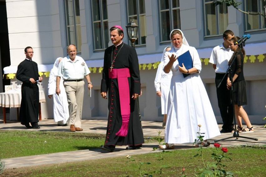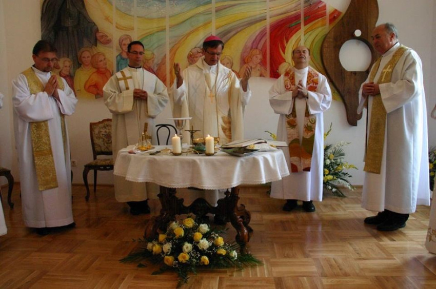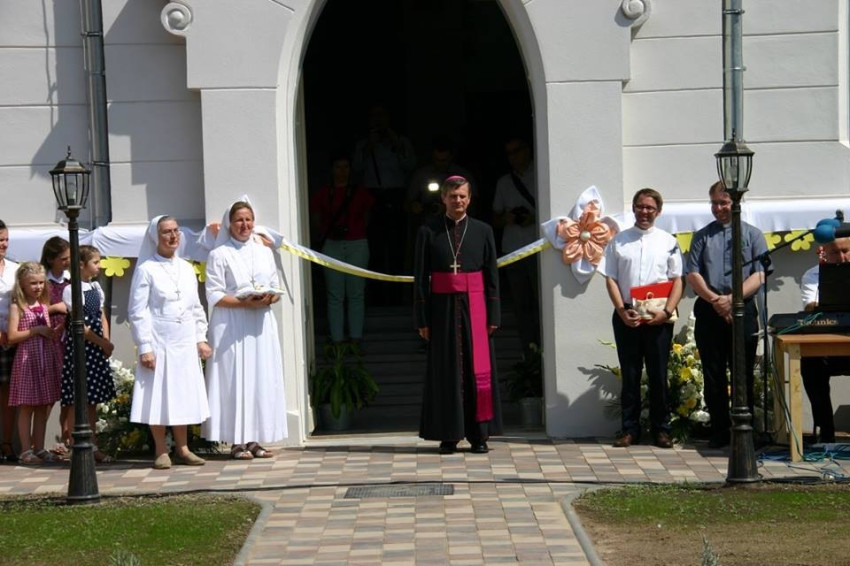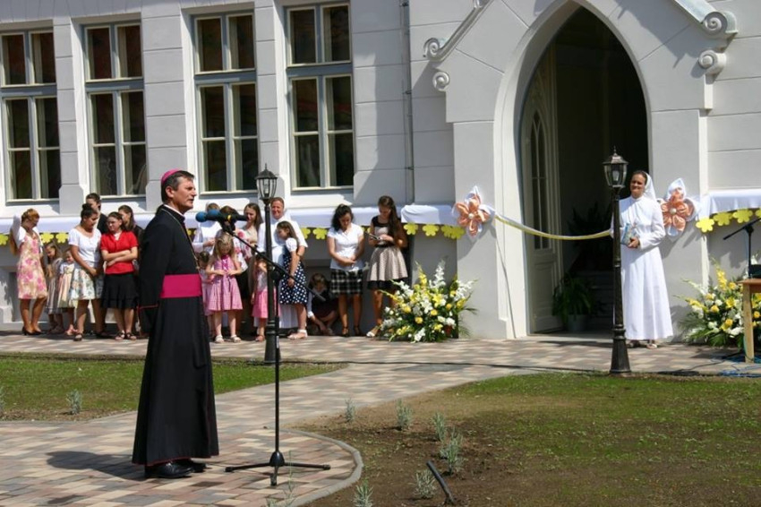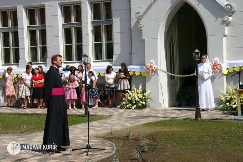 Schönberger Jenő megyéspüspök beszédében felidézte a múltat: több mint száz esztendeje a nagykárolyi nehéz sorsúak és árvák szolgálatára létrehozott épületet megszentelte az akkori megyéspüspök. Schönberger püspök méltatta a piarista nővérek áldozatvállalási készségét, ám felhívta a figyelmet arra is, hogy a gyermekotthon rendeltetésszerű működéséhez elengedhetetlen a hívek segítsége is, amelyre végezetül áldást kért.