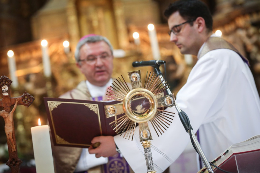 Minden ember vágyakozik Istenre, legalább sejtésszerűen mindenképpen – kezdi prédikációját a püspök. – Ha nem is vallásos, hisz Istenben, és legalább egy olyan pillanat biztosan van az életében, amelyben mélyen átéli ezt az isteni jelenlétre, szeretetre való vágyakozást. „Hiszek hitetlenül Istenben, / Mert hinni akarok, / Mert sohse volt úgy rászorulva / Sem élő, sem halott”, írja Ady. Mindannyiunknak akadnak olyan pillanataink, amikor úgy érezzük, Isten segítsége nélkül nem tudunk helytállni, és ezért nagyon hinni akarunk. Keressük Istent, de nem mindig találjuk meg. Lelki vakság jellemző ránk. Noha ő éltet bennünket, minden pillanatban velünk van, benne élünk, mozgunk és létezünk, sokszor úgy élünk, mint amiről József Attila sorai vallanak: „Az Isten itt állt a hátam mögött / s én megkerültem érte a világot”. Amikor közösségre vágyunk, abban is az Isten iránti vágy mutatkozik meg. Nem jó egyedül; minden ember arra vágyik, hogy másokkal megossza az életét. De a legjobb emberi kapcsolat és semmilyen öröm sem képes azt adni, amit az Isten és az ő jelenlétében időzés. Jézus az emberek iránti szeretetének utolsó jeleként adta az Eucharisztiát: testét és vérét, önmagát. Mi sem adhatunk neki cserébe kevesebbet.