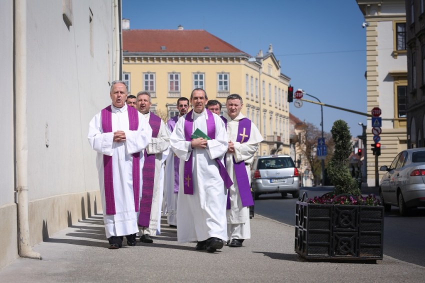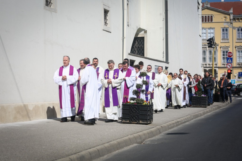 A püspök a prédikáció után megáldja az általa kápolnai használatra felajánlott szentségmutatót, majd a mise végén az utcán át a kápolnába viszi az Eucharisztiát. A tömeg kitódul a napfényre. Az úton nagy a forgalom, Sopron éli megszokott életét – mi azonban „Úrnapja-hangulatot” hozunk a szombat délutánba. Rengeteg ünneplőbe öltözött ember énekli a legszebb áldozási énekeket. Sokan átérzik, mennyire ünnepiek ezek a pillanatok, és szeretnék őket minél mélyebben megélni. A többség nem fér be a kápolnába, ezért kintről hallgatjuk az áldás szavait. Tömjénillat árad az utcára.