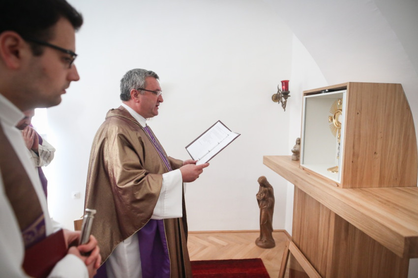 Rendkívüli pillanatokat élünk – mondja Barna Máté domonkos a mise kezdetén a kápolna megáldására érkezett Veres András győri püspököt, a Magyar Katolikus Püspöki Konferencia elnökét üdvözlő beszédében. – Ma egy új szent hely jön létre Sopronban, amelytől azt reméljük, hogy kiárasztja a városra és a környékre az ima erejét. A püspök válaszában „lelki erőmű”-nek nevezi az Örökimádás-kápolnát, és megköszöni a domonkosoknak, hogy otthont adtak a szép kezdeményezésnek.