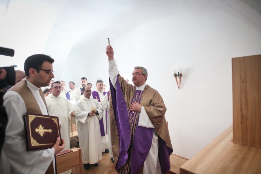 Én kértem, hogy a domonkos Aquinói Szent Tamásról nevezzük el a kápolnát – mondja Szabó Sándor Bertalan házfőnök. – Ő ugyanis sokat tett azért, hogy az Eucharisztia titkához közelebb kerülhessünk, teológiai és spirituális értelemben is. Annyira, hogy Jézus egyszer megjelent és ezt mondta neki: „Jól írtál rólam.”