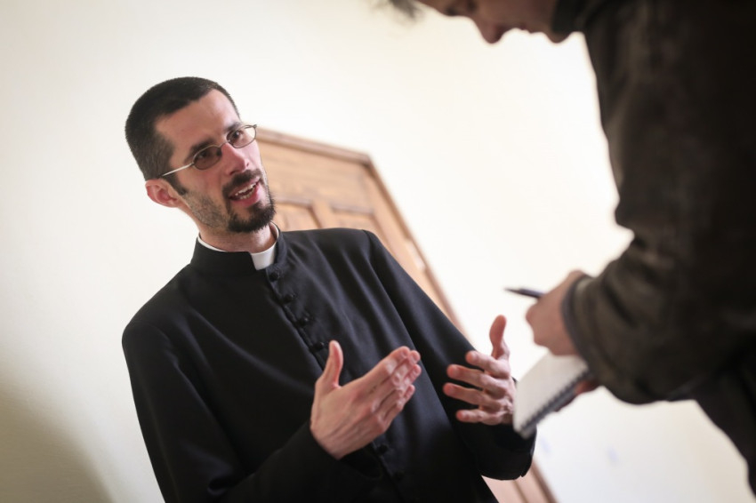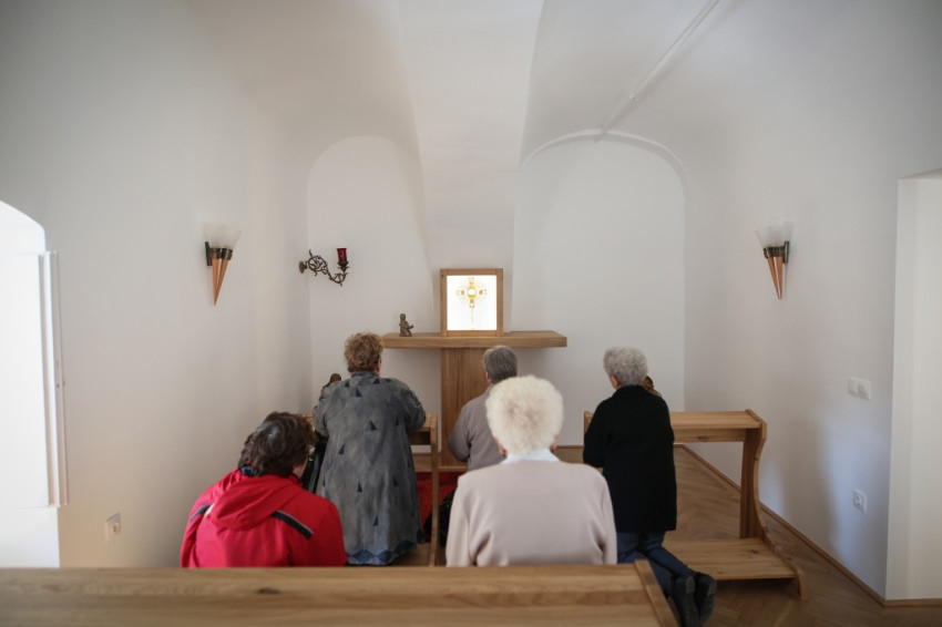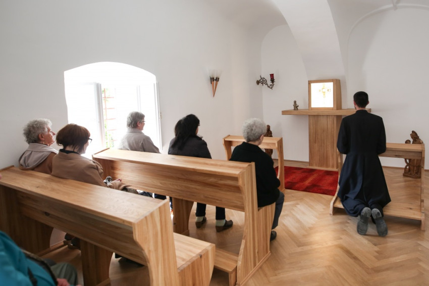 Az ünnepi fogadáson először Benkó Attilával, a kápolna szolgálattevőinek lelkivezetőjével beszélgetek, aki korábban a soproni Szent Orsolya-iskola lelkészeként egyik kezdeményezője volt az ottani délutáni szentségimádásnak. Nagyon hisz abban, hogy csak a csendben, az Úr előtt töltött időben lehet megszentelődni, átalakulni, ezért havonta egyszer átjár Sopronba egy-egy közös imaalkalmat tartani Mosonmagyaróvárról, ahol most káplán.