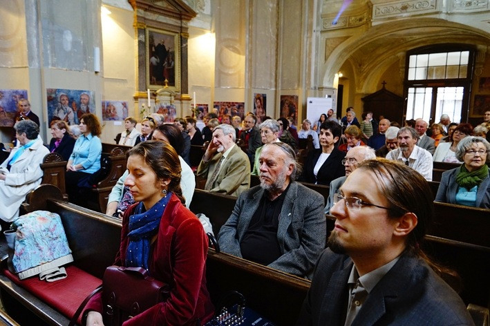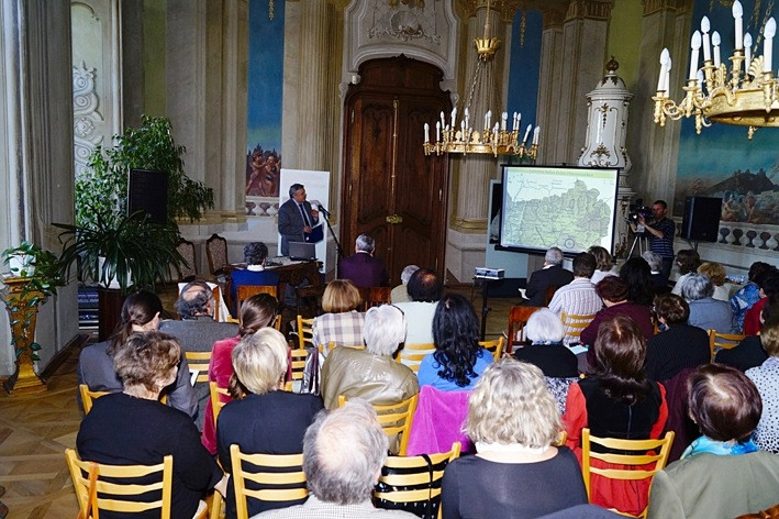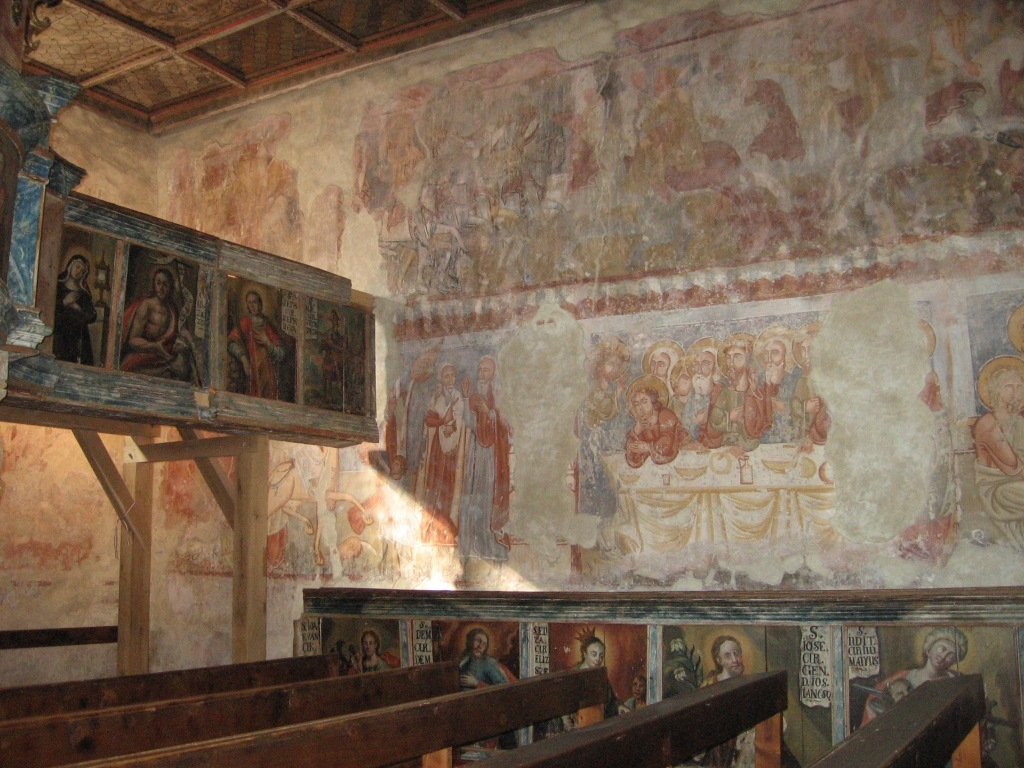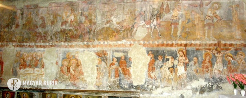 Udvarhelyi Nándor előadása végén a templom freskóit szemléltette kivetített képeken, s rámutatott, hogy milyen lelki-tartalmi kapcsolat fedezhető fel a Szent László-legenda és a Passió-sorozat egymás alatt-fölött elhelyezkedő képei között. A 16–17. században a reformáció éveiben a freskókat feltehetően lemeszelték – mondta –, s egészen 1882-ig a feledés homályába merült, hogy milyen értékeket rejt az épület. Akkor azonban egy műkincs-összeírás alkalmával a már régóta bezárt épületet bejárva, rábukkantak a templomtérben – ahol a meszelést is lemosta már az eső a falakról – az értékes freskókra. S ez mentette meg a templomot a lebontástól. A szentély helyreállítása azonban csak 1932-ben kezdődött el, s utómunkálatai még az 1970-es években is folytak. Mivel az 1990-es évekre ismét aggasztóan veszélyes állapotba került a templom, felvették a világ száz legveszélyeztetettebb műemléke közé, ennek nyomán kezdődhetett meg egy nemzetközi alapítvány révén a helyreállítása, restaurálása. 2002-ben a megújult, megszépült templomot ünnepélyes szertartás keretében adhatták át a híveknek.