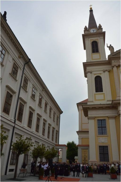 Soltész Miklós egyházi, nemzetiségi és civil társadalmi kapcsolatokért felelős államtitkár beszédében kiemelte: ez a felújítás ékes példája az építkező Egyháznak. „Kívánom, hogy a hívők, az Isten-keresők és a nem hívők is meglássák az élő Egyházban a tevékeny szeretetet. És meglássák a kiállításokban, hogy az Egyház mindig a közösséget: a hívőket, nem hívőket szolgálja.”
