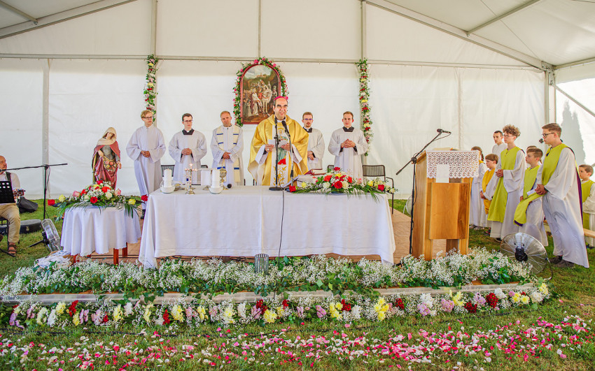 A Karitász önkéntesei és a tábori foglalkozásokban részt vevő kispapok pontban délre megterítettek. Az asztali áldást a főpásztorral mondták a táborozók.