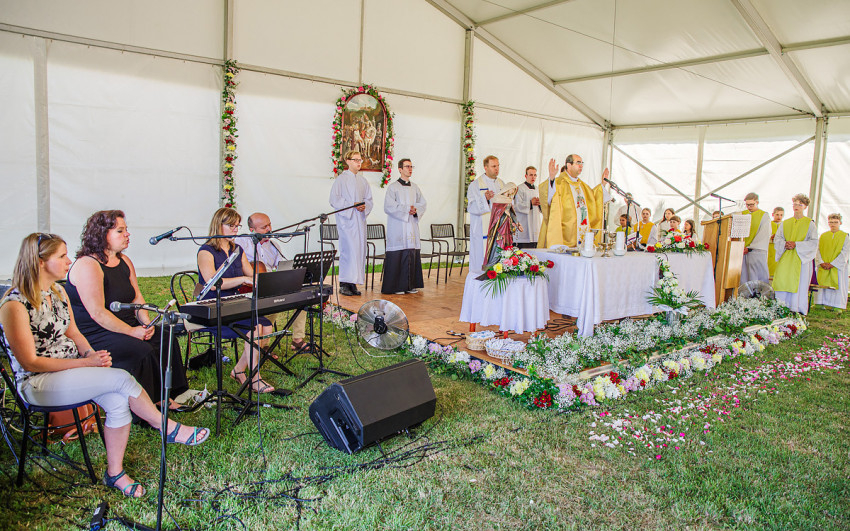 A szentmisén dicsőítő dalokat énekelt az Ébren Álmodók Együttes.