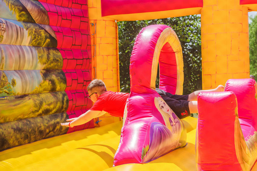 Még az ebéd előtt csúcsra pörgött a légvár, a trambulinpark és számos szabadtéri játék is – a rekkenő hőségben is gyermekzsivaj töltötte be a nardai plébániaudvart. A fedett foglalkoztatóban ebéd előtt kézműves-foglalkozások zajlottak.