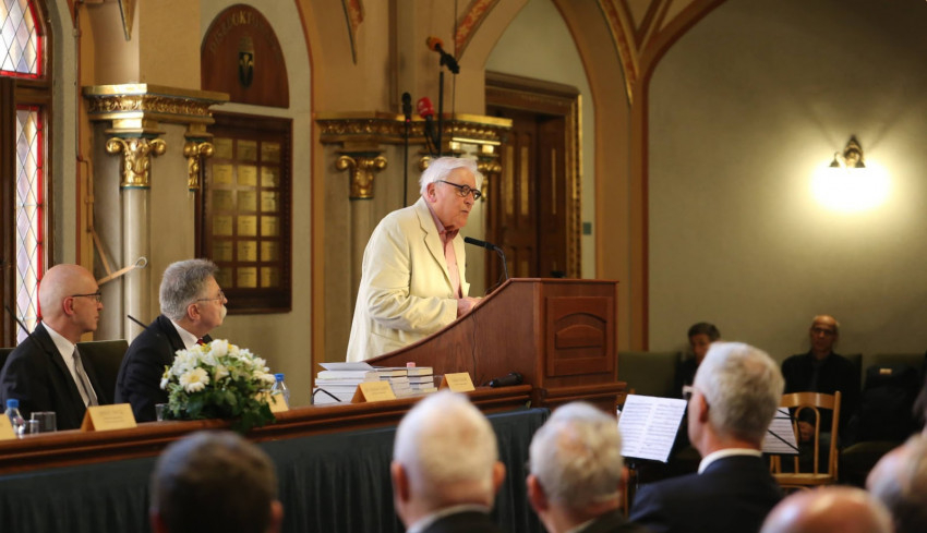 Szovák Kornélt Solymosi László történész méltatta. Elhangzott: a klasszika-filológus középkortörténész életére meghatározó hatást gyakorolt a Pannonhalmi Bencés Gimnázium világa és az ott megismert levéltári munka, így az érettségit követően 1982-ben egyetemi tanulmányait latin–történelem szakon kezdte meg. Korán bekapcsolódott a tudományos munkába; fő kutatási területe a középkori eszme- és művelődéstörténet, az ókori, illetve középkori magyar történelem írott forrásainak kutatása, feltárása és kiadása.