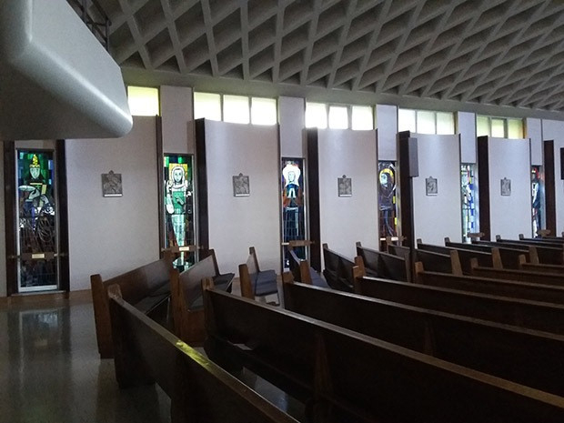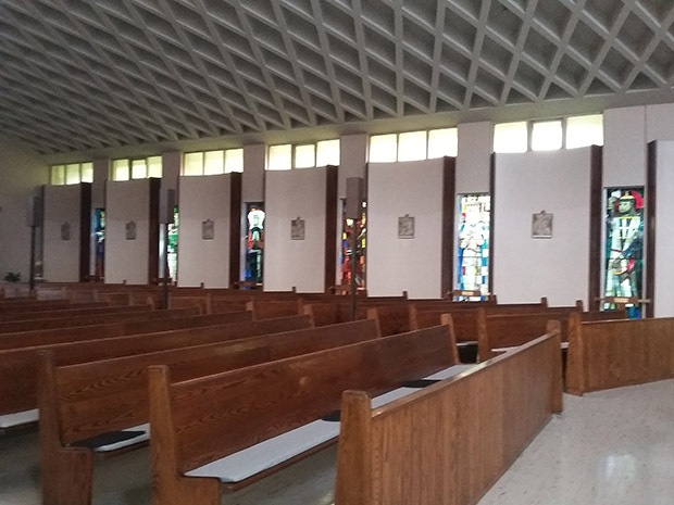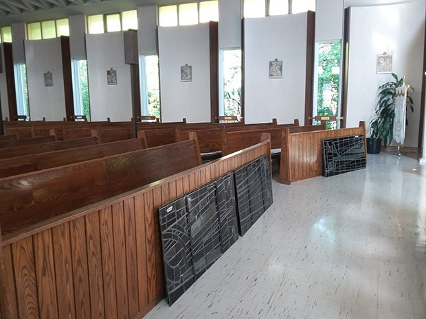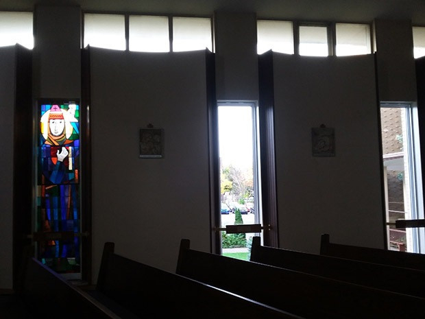 Az üvegablakok, Lehoczky György (1901–1979) alkotásai, a templom építését követő évben, 1964-ben készültek a Montreáli Magyar Katolikus Nőszövetség ajándékaként.