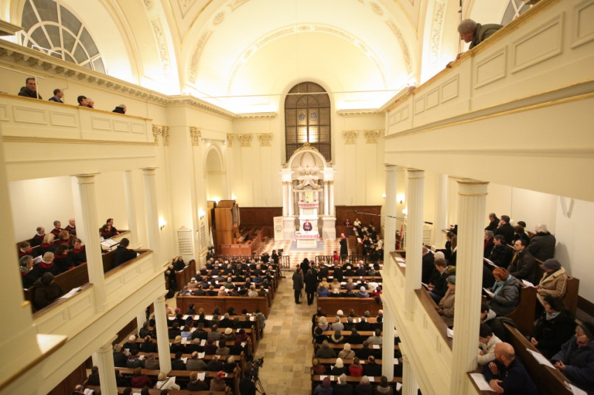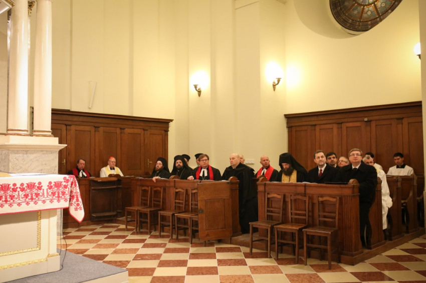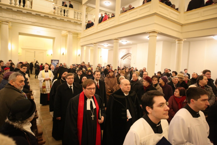 Befejezésül a keresztény felekezetek vezetői, képviselői áldást adtak a jelenlévő keresztényekre, akik betöltötték a Kálvin téri református templom padsorait.