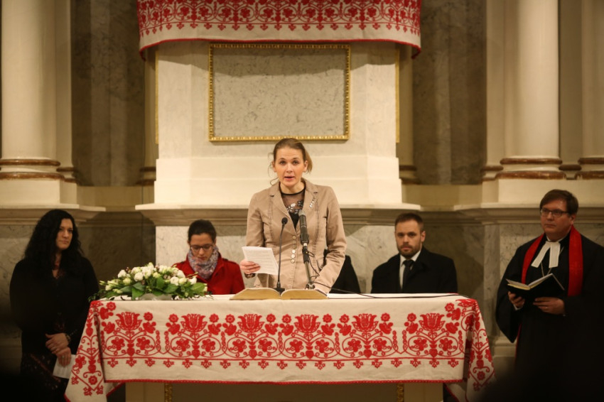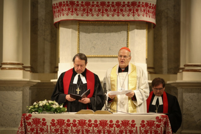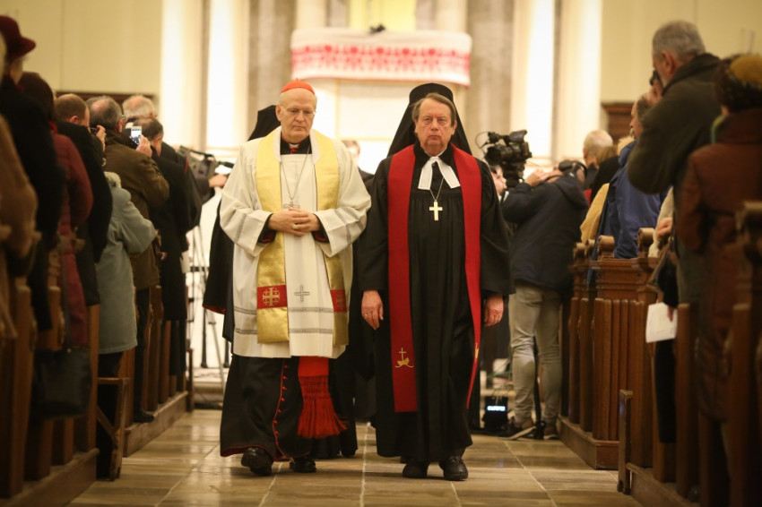 Fischl Vilmos evangélikus lelkész, a Magyarországi Eegyházak Ökumenikus Tanácsának (MEÖT) főtitkára köszöntötte az egybegyűlt híveket, majd Steinbach József református püspök, a MEÖT elnöke vette át a szót a német keresztények által írt forgatókönyv és szöveg alapján végzett szertartáson. Elhangzott, hogy protestánsok és katolikusok már több mint 50 éve járják azt az utat, amely „a szembenállástól a közösségig” vezet, utalva az ismert ökumenikus dokumentumra (A szembenállástól a közösségig). „Örömmel fedeztük fel, hogy sokkal több az, ami összeköt bennünket, mint ami elválaszt. A közös úton egyre nőtt bennünk a kölcsönös megértés és a bizalom.” Szó esett továbbá arról is, hogy az összejövetel az „evangélium örömével és a megosztottság bánatával” vegyes érzések közepette hálaadással, bűnvallással, és közösen vállalt tanúságtétellel folytatódik.