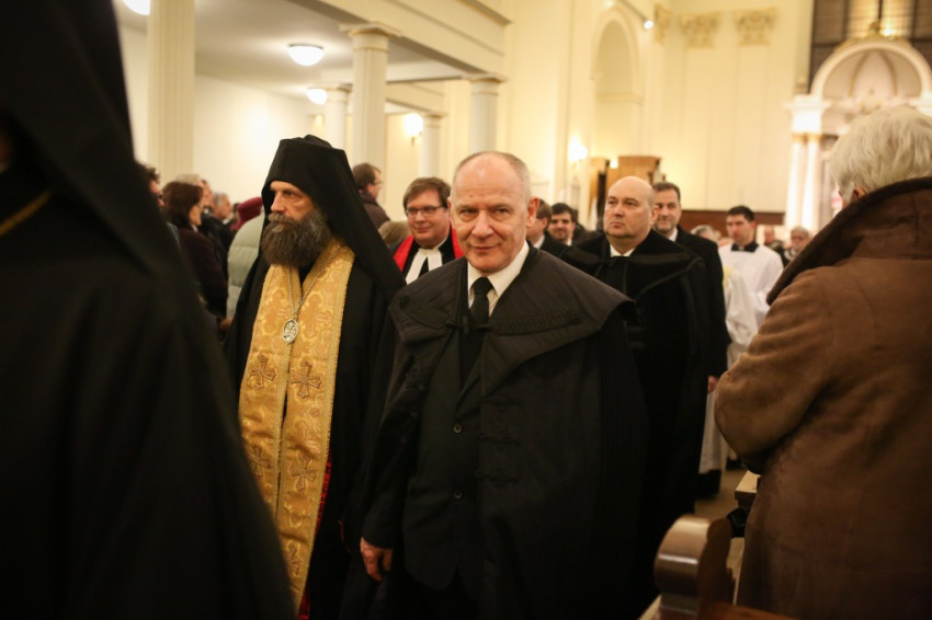 Az újabb évszázadokban sokszor megtapasztalhattuk, hogy az egyházakat hatalomból és dicsőségből, evilági biztonságból, társadalmi pozícióból és vagyonból kiforgatták a történelem viharai. A jelenlévők közül biztosan vannak még, akik emlékeznek, hogy milyen nehéz volt a keresztény hitet és szeretetet középpontba állítani, amikor a hatalom a hívek minden megnyilvánulását az ateista ideológia mércéje szerint értékelte. Abban az időben gyakran éreztük úgy, hogy mi, keresztények egy csónakban evezünk. És éreztük azt is, hogy ez a csónak nem halad nyugodtan, mert viharos erejű ellenszél fúj. Akkor ez a tapasztalat világos volt. De tudjuk, hogy így van ez minden időben. Maga Jézus megmondta, hogy nem lehet különb a tanítvány mesterénél. Krisztus követőinek életét a világban valahol mindig kísérte az üldöztetés. Így van ez ma is. Sokszor a puhább diszkrimináció és az agyonhallgatás veszi körül a keresztényeket, a világ számos táján azonban véres üldözés folyik. Hosszú évek óta évről évre százezres nagyságrendben gyilkolnak meg embereket csak azért, mert keresztények. A tavalyi év statisztikája szerint a világon a vallásuk miatt üldözött emberek 80%-a keresztény volt. Az ilyen, fenyegetett országokban járva gyakran nem is nyilvánvaló azonnal, hogy milyen felekezethez tartoztak az áldozatok. Sokszor csak annyit mondanak róluk: keresztények voltak. Márpedig ha egy megkeresztelt embert pusztán azért gyilkolnak meg, mert keresztény, az vértanú a szó legnemesebb értelmében. Az beletartozik abba a jelképes 144 ezerbe – hány és hány millióba! –, akik „fehérre mosták ruhájukat a Bárány vérében” (Jel 7,14).