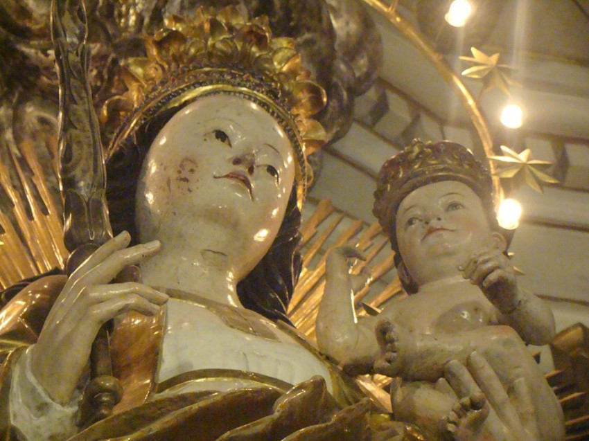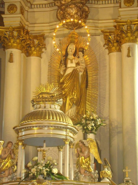 A szentmise elején Urbán Erik OFM templomigazgató kifejtette: „a csíksomlyói kegytemplom, a pápai kisbazilika legdrágább kincse az Oltáriszentség után a Szűzanya kegyszobra. A körülbelül ötszáz éves, reneszánsz stílusú kegyszobor hársfából készült. Alkotója ismeretlen. Magassága 2,27 m. A világon ismert kegyszobrok közül a legnagyobb. A napba öltözött Asszonyt ábrázolja, akinek lába alatt van a hold, fején a tizenkét csillagból álló koszorú. Királynőként is ábrázolja Szűz Máriát: fején korona, jobb kezében jogar, bal karján tarja Szent Fiát, a világ Megváltóját. 1798-ban Batthánnyi Ignác erdélyi püspök idején az egyház Csodatevő, segítő szent Szűznek nevezi el.”