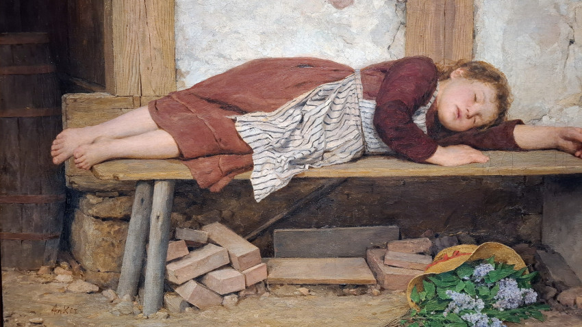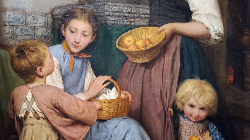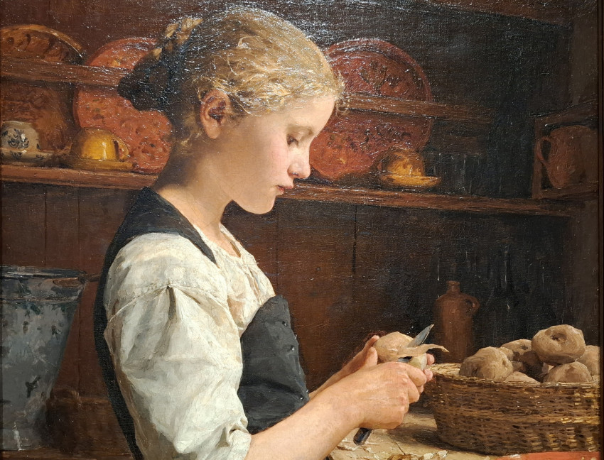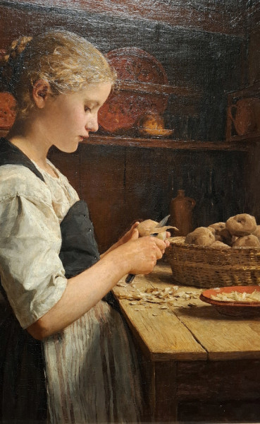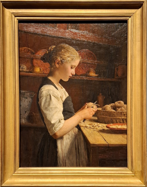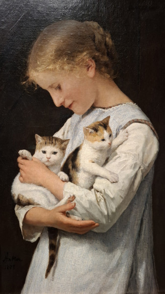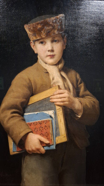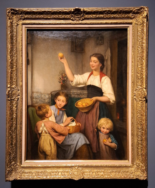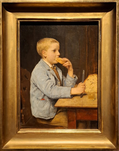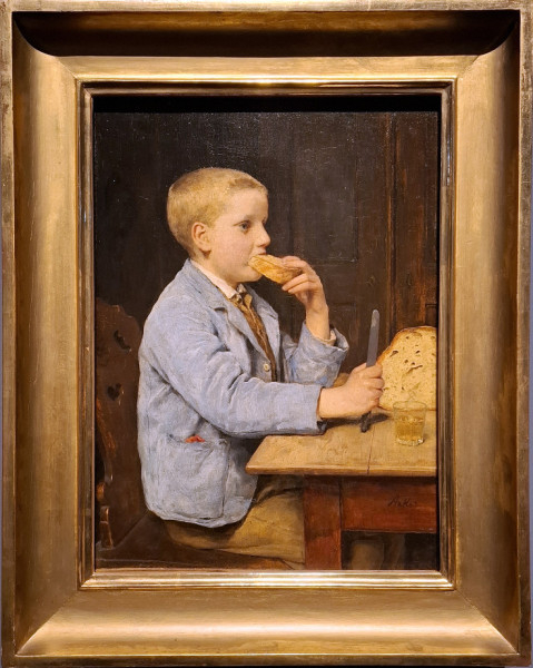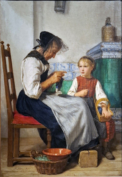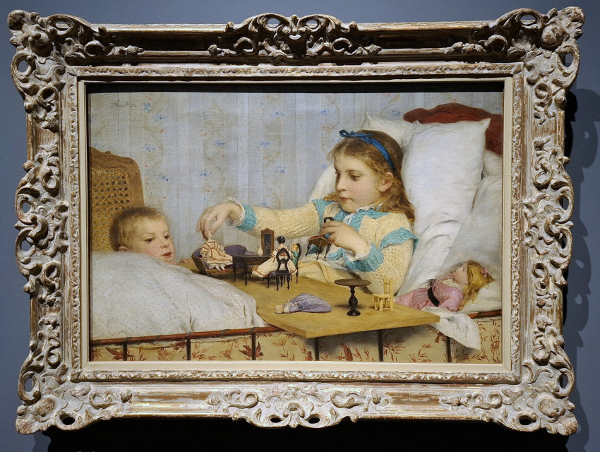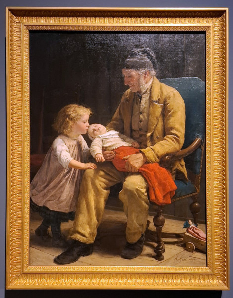 Ezután Albert Anker családi tematikájú, finoman megfestett, realista olajképei következnek, mint például A nővér (1867) című alkotása. Aranybarna színek uralják a képet, amelyek már önmagukban is melegséget, bensőséges hangulatot árasztanak. Hasonló a Nagyapa két unokájával (1881) című festmény is. Anker többi alkotása gyerekportrék sorozata, ilyen a Krumplihámozó lány vagy a Kisfiú tízórai szünetben (1886) című, amelyek roppant egyszerűen megfestett, szívet melengető alkotások. Anker realizmusa rendkívül érzékeny szellemre utal, semmikképpen sem esik a naturalizmus „bűnébe”, nem akar többet, mint amit ábrázol. Ebben talán leginkább a magyar Glatz Oszkárhoz hasonlít, akit szintén a finom realizmus jellemzett, és mindig nagyvonalú tudott maradni festészetében.