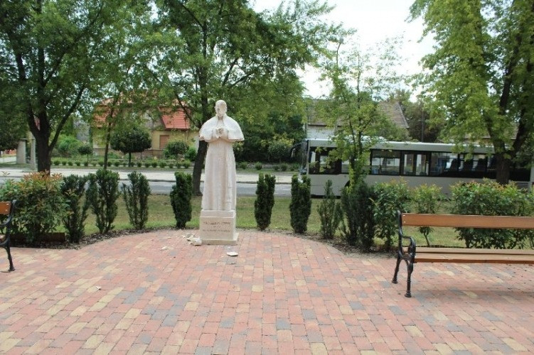 K. Miklós ütötte-verte a szobrot, amelyből több darab le is tört. A férfi cselekményével többmilliós kárt okozott az emlékműben. A komáromi rendőrök amint tudomást szereztek a bűncselekményről, az elkövető felkutatására indultak. A 34 éves gyanúsítottat két nappal később otthonában fogták el és előállították. Kiderült, hogy a férfi az elmúlt napokban több hasonló jellegű bűncselekményt is elkövetett. Egy héttel korábban egy lottózó üvegajtaját dobálta meg kővel, a szobor megrongálását követő napokban pedig egy vascsővel betörte szomszédja házának ablakát, valamint a helyi rendőrkapitányság ablaküvegét is.