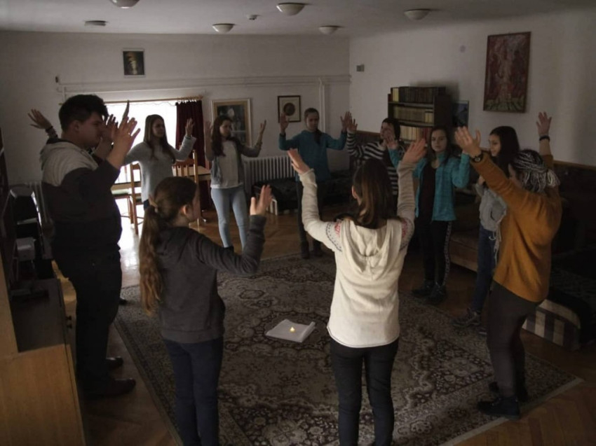 A díszteremben tartott szentségimádás remek lehetőség volt a nap során megtanult vagy megélt imaformák átgondolására, vagy egyszerűen csak be lehetett kapcsolódni a közös énekbe, és így megélni a dicsőítést. A délután folyamán a jókedv és a játék sem maradhatott el.
