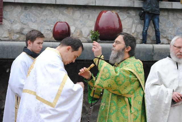 A szertartás végén Orosz Atanáz a híveket is meghintette a szenteltvízzel.