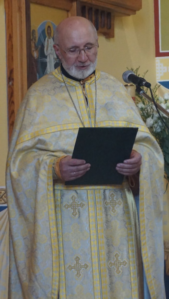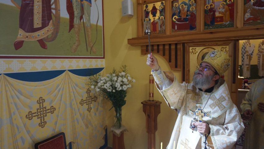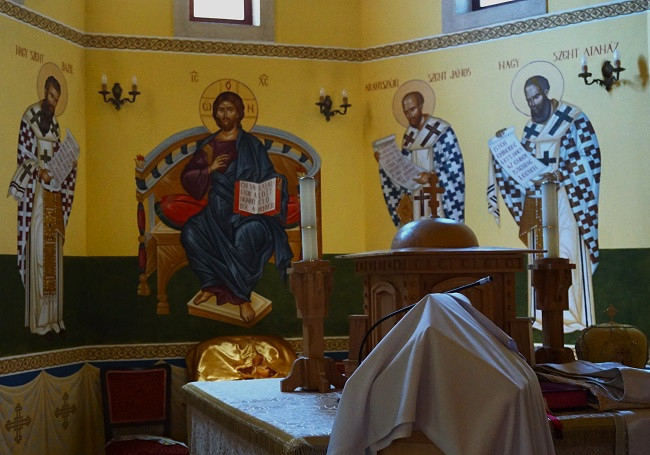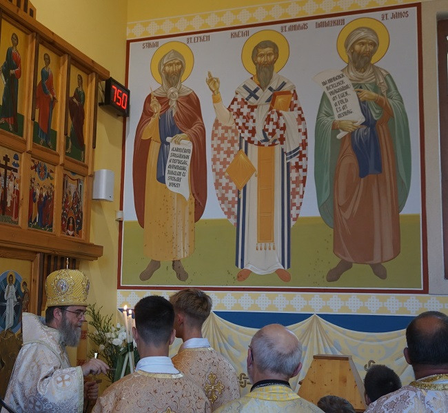 Az ünnepi szertartás az ikonok megszentelésével kezdődött. Hosszabb könyörgő imádságok után elsőként a szentélyben látható Istenszülő-ikont, majd Szent István diakónus és Szent Miklós ikonját szentelte meg a püspök, majd sorban a falakon ábrázolt további szentek képeit.
