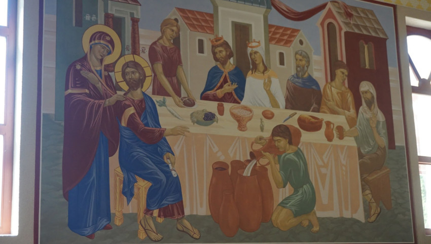 Atanáz püspök a templomhajóban látható két legnagyobb falképhez fűzte ünnepi tanítását: „Nagyon sokat jelent számunkra a kánai menyegző ábrázolása, ahol Jézus Krisztus megáldja a házasságot, a férfi és nő életszövetségét, úgy, ahogyan azt a Teremtő Atya megteremtette és annak idején megáldotta.