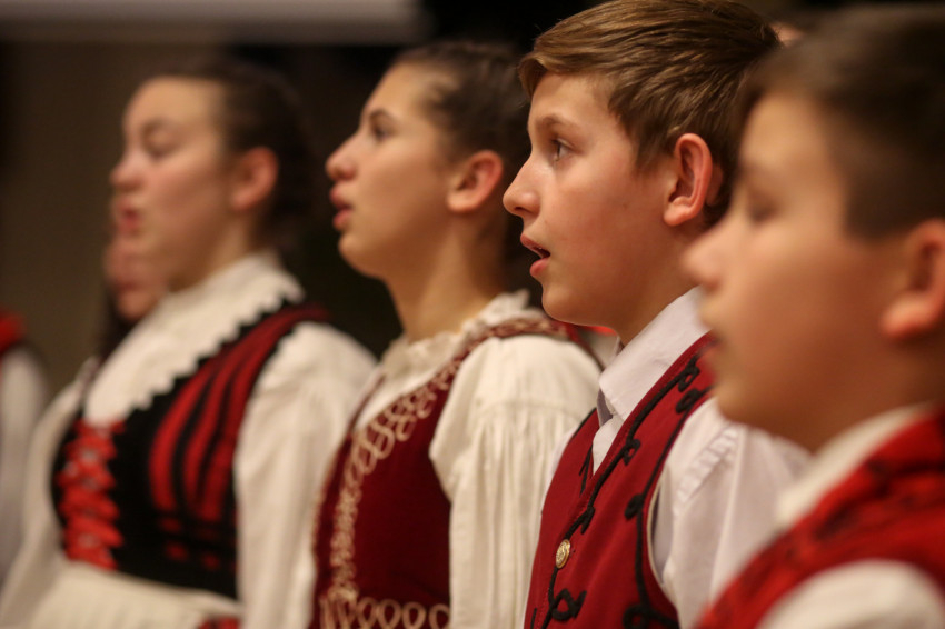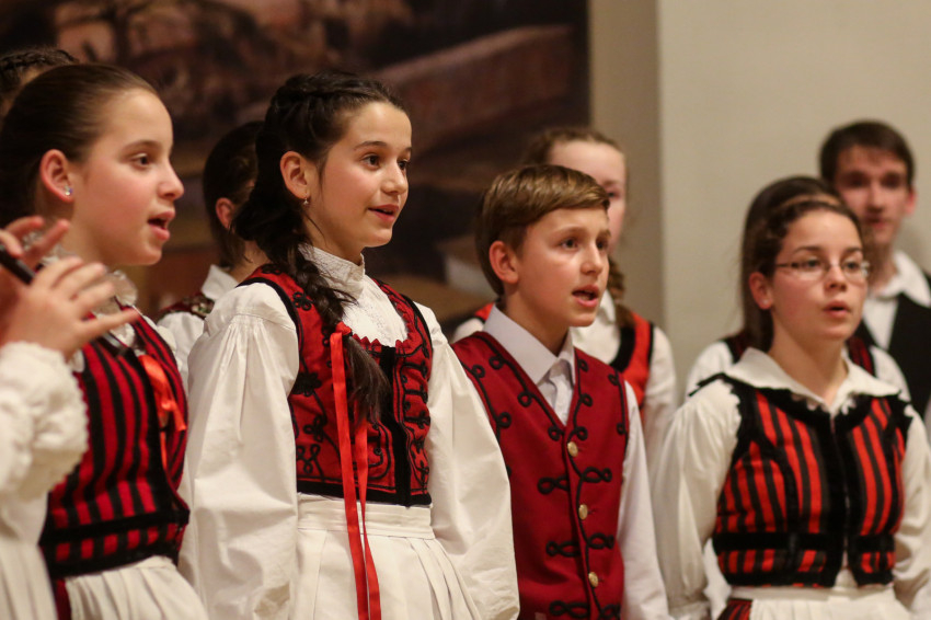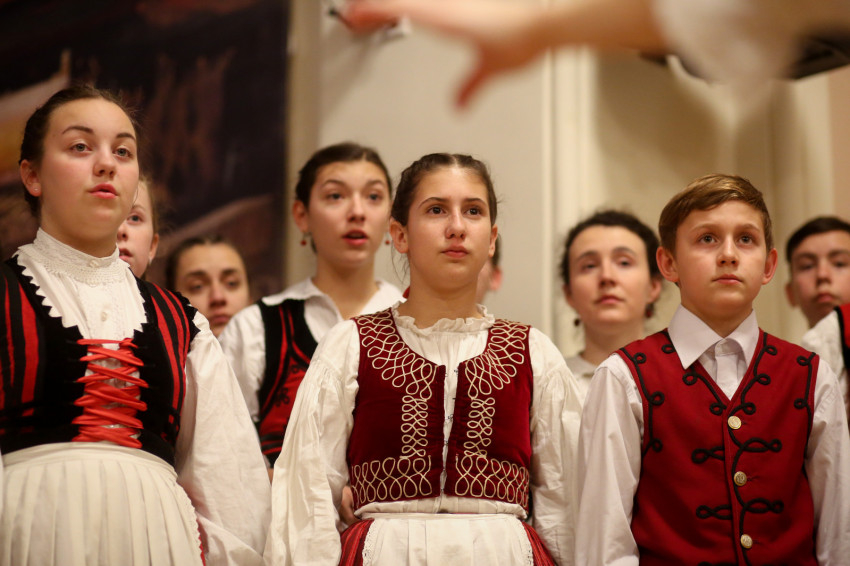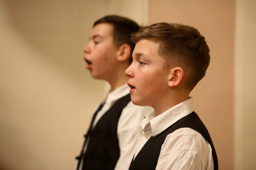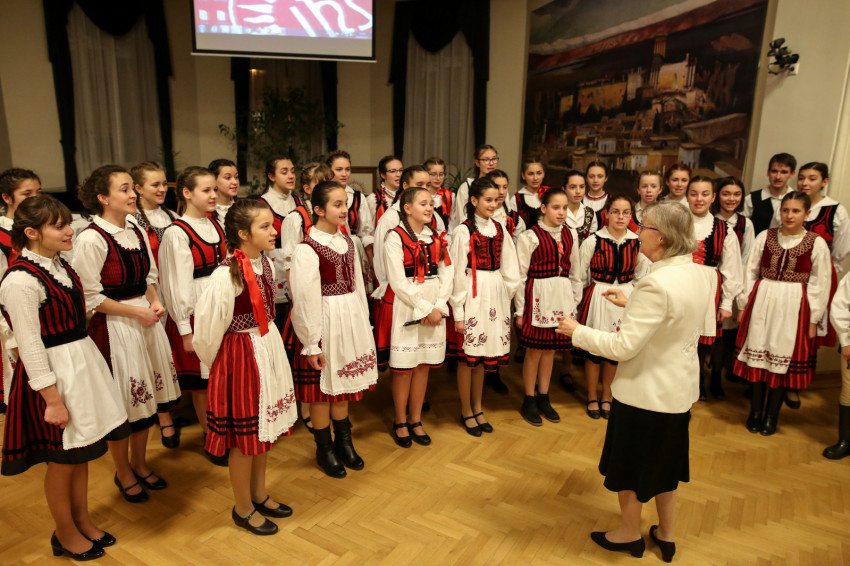 Az este mottóját Ady Endre Karácsony című verséből vették a szervezők: „Harang csendül, ének zendül, messze zsong a hálaének!” Az egyik alapító, Czakó Gabriella által vezényelt, mintegy harminc tagot számláló kórus 7–18 éves gyerekekből és fiatalokból áll, többségükben lányok. Éneklés előtt érzékelhető feszültség, koncentráció látható rajtuk, de amikor dalolni kezdenek, hihetetlen felszabadultság, boldogság keríti hatalmába őket, átsugárzik a nézőkre a lelkükből fakadó, ösztönös öröm és szeretet, hogy most adhatnak valami jót, valami szépet az embereknek. Tökéletes összhang uralkodik köztük, s ezt látva a tudósító arra gondol, mennyi rejtett kincs rejtőzik a mélyben, és milyen hatalmas áldozatkészség, eltökéltség, kitartó szorgalom kell ahhoz, hogy mindez felszínre kerüljön, ragyogjon, sokak gyönyörűségére. Kodály Zoltán, Bartók Béla, Bárdos Lajos műveit hallhattuk. Az est elején zengett a kórustagok örömteli éneke: „Adjon Isten minden jót, az új esztendőben… Mitől félsz, mentsen meg, amit vársz, legyen meg…”, a végén pedig lírai csöndességgel, lassan, elmélyülten szólt az esti hálaadás a gondviselő Istenhez: „Adjon Isten, jó éjszakát, Küldje hozzám szent angyalát. Bátorítsa szívünk álmát, adjon Isten jó éjszakát.”