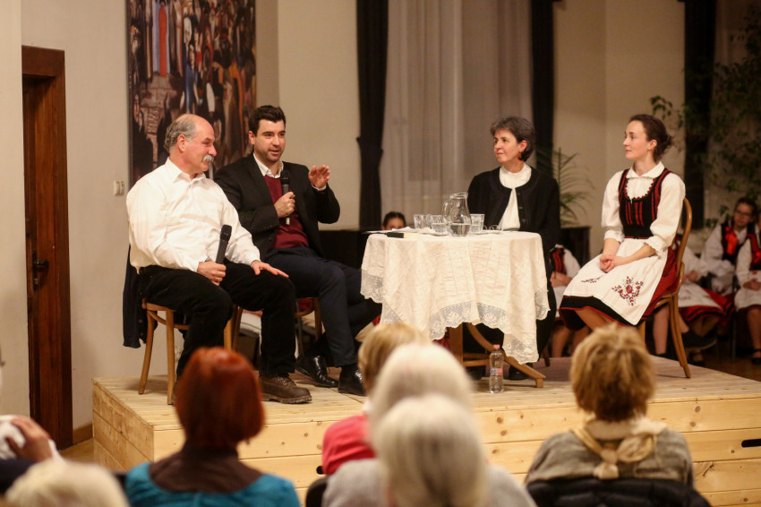 Lukácsy György újságíró beszélgetett a Kossuth-díjas ének- és mesemondó Berecz Andrással, valamint a Marossszéki Kodály Zoltán Gyermek- és Ifjúsági Kar egyik vezetőjével, Nagy Vera Éva iskolanővérrel és Lokodi Anna volt kórustaggal, aki ma már karnagyi feladatokat is ellát.