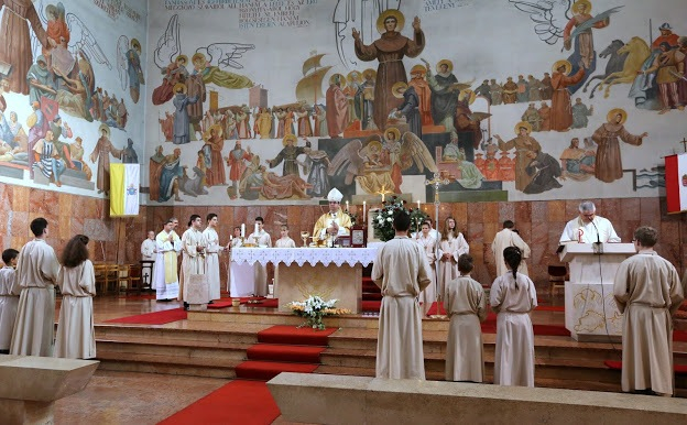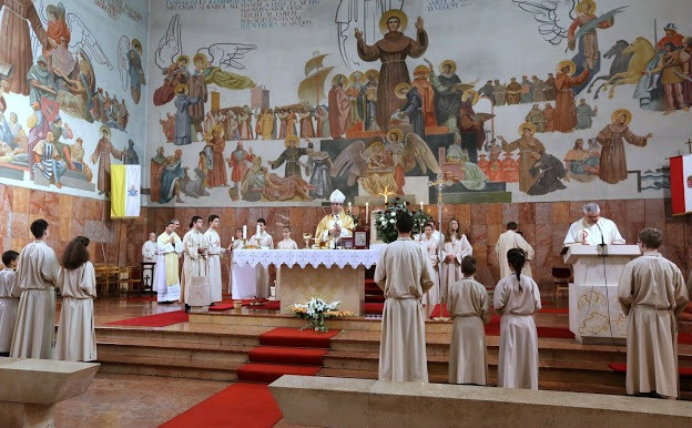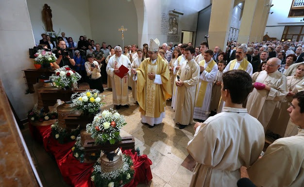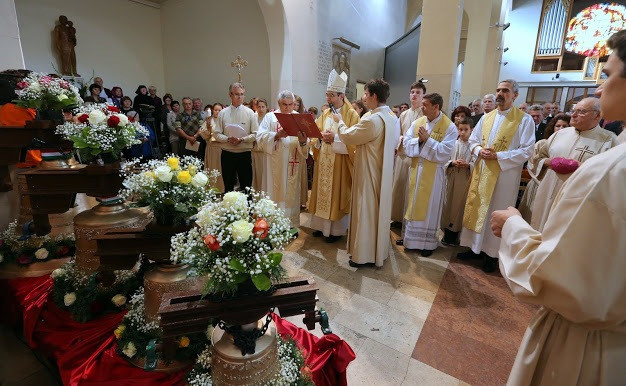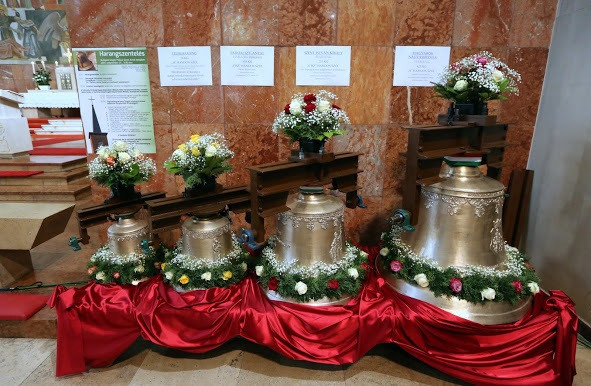 Bárány Béla plébános köszöntésével kezdődött a zsúfolásig megtelt zuglói Páduai Szent Antal-templomban a harangszentelést ünneplő szentmise. Székely János esztergom-budapesti segédpüspök a szentmisét bemutató papsággal a harangokhoz vonult, elvégezte a szentelés szertartását, majd a négy harangot felhúzták a toronyba, ahol a szentmisét követően első ízben megszólaltak.