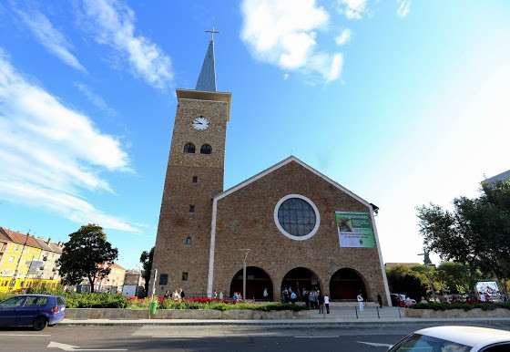 A zuglói templom építésének története 1919-ben kezdődik, amikor Csernoch János hercegprímás kijelölte a zuglói plébánia területét. A templom alapkövét 1941. december 14-én az azóta boldoggá avatott Meszlényi Zoltán segédpüspök áldotta meg, majd a félkész állapotú épületet Mindszenty József hercegprímás szentelte fel 1946. augusztus 18-án. Sürgetett ugyanis az idő, mert a kormányzat az épületet vásárcsarnokként kívánta hasznosítani. Ekkor már készen voltak a templomtorony tervei, de akkor pénzhiány miatt csak egy 19,5 méter magas torony épült meg.