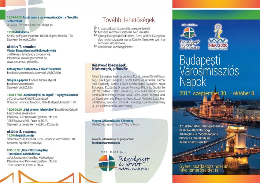 – A Nemzetközi Eucharisztikus Kongresszus első előkészületi évében arra lettünk meghívva, hogy egyénileg mélyítsük el kapcsolatunkat hitünk nagy kincsével, az Eucharisztia misztériumával. Ezért programjainkban jelentősen kiemelkednek a szentségimádási órák és a szentmise. Szeretnénk tovább erősödni a hitben, a Jézus Krisztushoz fűződő kapcsolatunkban. Ha már megerősödött a tűz bennünk, akkor indulunk el, hogy megszólítsuk a környezetünket. A missziós menet ennek egyik kifejezése, imáinkkal megszenteljük, énekünkkel Jézushoz hívjuk a környezetünkben élőket. Viszünk magunkkal igekártyákat, és odaadjuk a közelünkben állóknak. Akár a környező éttermekbe, sörözőkbe is betérhetünk, ugyanezzel a céllal, biztatni, reményt adni az embereknek.