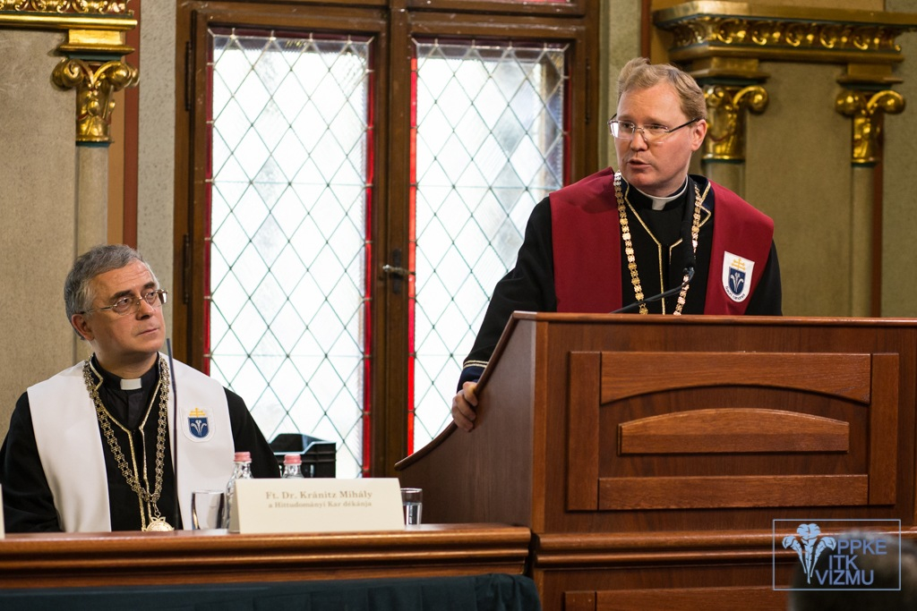 A rektor rövid áttekintést adott arról az antropológiai változásról, amely a 18., a 20., majd a 21. században megingatta az alapvető emberi értékekbe vetett bizalmat, téves, mulandó célokkal cserélve fel az igazság és a felelősség emberi életet gazdagító útját.