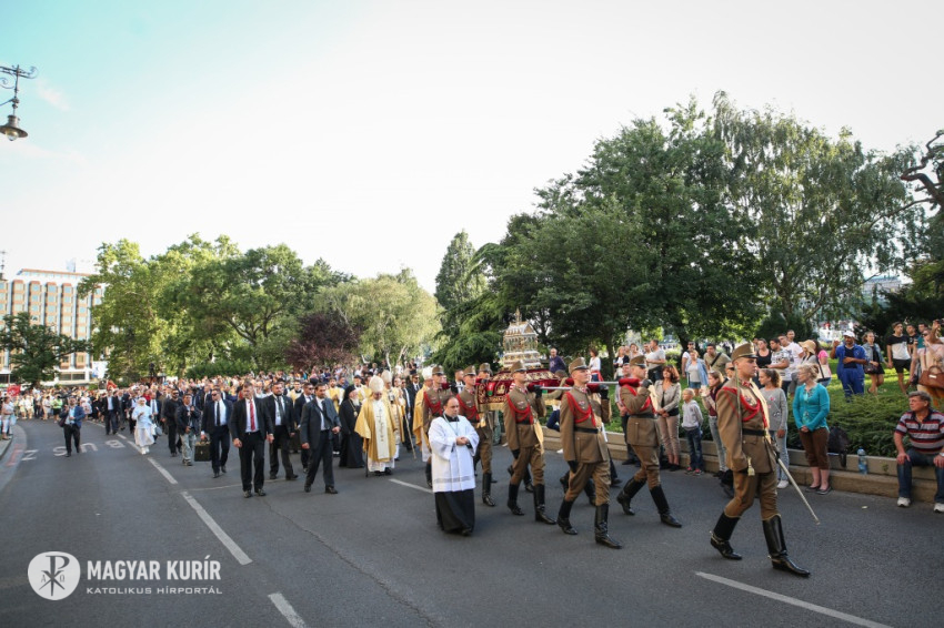 Az ünnepi szentmise végén megtartották a Szent Jobb-körmenetet, az ereklye előtt a Katolikus Karitász és a Magyar Máltai Szeretetszolgálat tagjai és önkéntesei, az Apostoli Szentszék által elismert szerzetes- és lovagrendek, az apostoli élet társaságai, a papság, valamint a plébániák zarándokcsoportjai vonultak.
