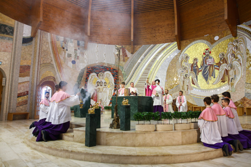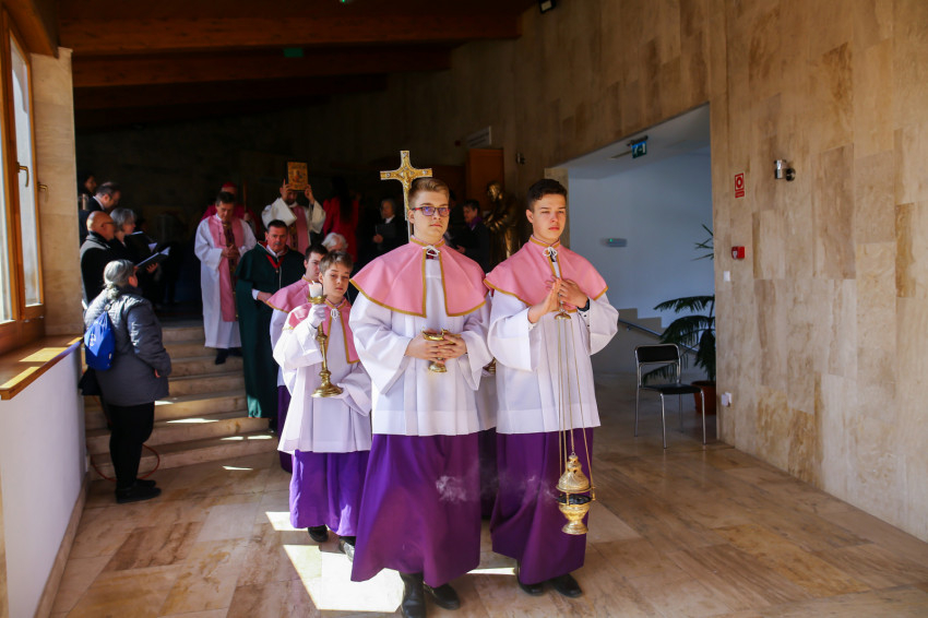 Cserháti Ferenc a liturgia bevezetőjében kiemelte: érjen minket világjárvány, háború vagy bármilyen más csapás, ezt a napot, nagyböjt 4. vasárnapját, Laetare, azaz örvendetes vasárnapnak hívjuk, mert a napi szentmise kezdő sorai ősidők óta az Úr vigasztaló, szabadító üzenetét hirdetik: „Örvendezz, Isten népe! Gyűljetek össze mind, akiknek kedves az Úr ügye. Szívből örüljetek, akik azelőtt szomorkodtatok. Vigasztalódjatok meg, mint a gyermek, aki megnyugszik anyja kebelén” (Kezdőének, vö. Iz 66,10–11).