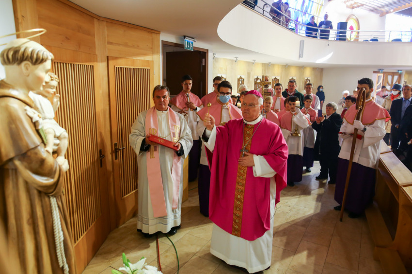 A szentmise kezdetén a templom plébánosa, Szederkényi Károly köszöntötte a püspököt 75. születésnapja alkalmából, kérve Isten áldását további szolgálatára.