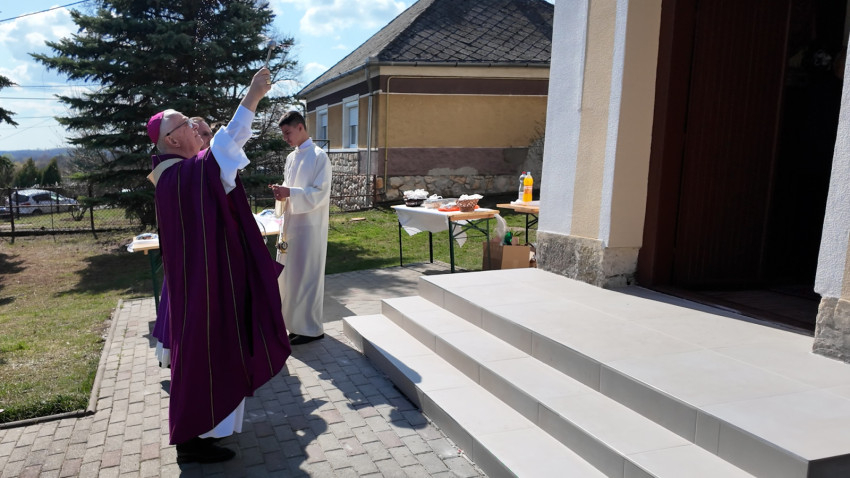A főpásztort köszöntő Danyi László, az egyházközség világi elnöke felidézte a múlt eseményeit, miszerint a II. világháború után a helyi közösség felekezettől függetlenül összefogott, és fél év alatt felépítették az épületet. „Templomunk az összetartozás biztos bástyája. A feladatunk az, hogy megőrizzük és élettel töltsük meg ezeket a falakat.”