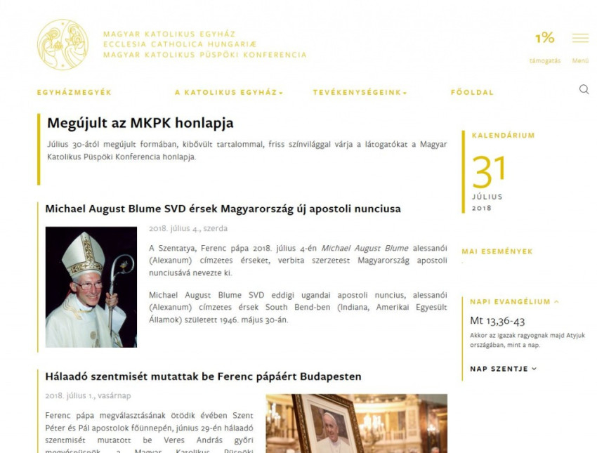 Az átalakult Menüsorban megtalálható többek között az egyházmegyék térképe, a Katolikus Egyház felépítése, a Katolikus Egyház Katekizmusa, zsolozsmaolvasó, miserend, a plébániai honlapok elérhetősége, valamint az Egyház és a társadalom kapcsolatáról is olvashatnak a látogatók. A Tevékenységeink menüpont alatt a szociális és oktatási intézményeink listáját találhatják, valamint a katolikus sajtó világában is segítünk eligazodni.