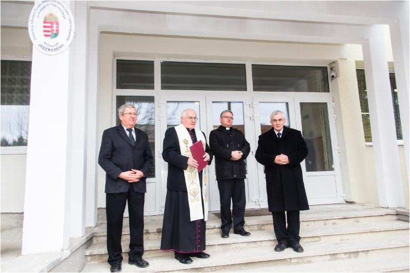 Szabó László, az intézmény igazgatója köszöntőjében ismertette a részleteket. Kifejtette, hogy a napokban záruló, több mint féléves beruházás során az iskola, valamint a kollégium épületeinek energetikai korszerűsítése valósult meg. Az épületegyüttes Jászberény Város Önkormányzat tulajdonában van, melynek az Egri Egyházmegye a vagyonkezelője. A beruházás további célja az volt, hogy csökkenjen az épület káros anyag kibocsátása, az üzemeltetési és fenntartási költsége, valamint redukálódjon a fosszilis anyagok felhasználása is