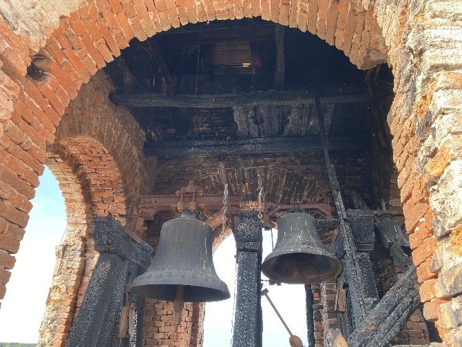 A tűz károsította a teljes harangtornyot – a torony fafödémeit, a harangtartó állványt, a torony nyílászáróit –, sőt a harangok is használhatatlanná váltak. A torony tűzeset során károsodott szerkezeti elemeinek és a sérült harangoknak az eltávolítása balesetveszély miatt elengedhetetlen volt.