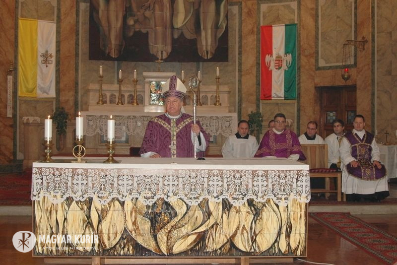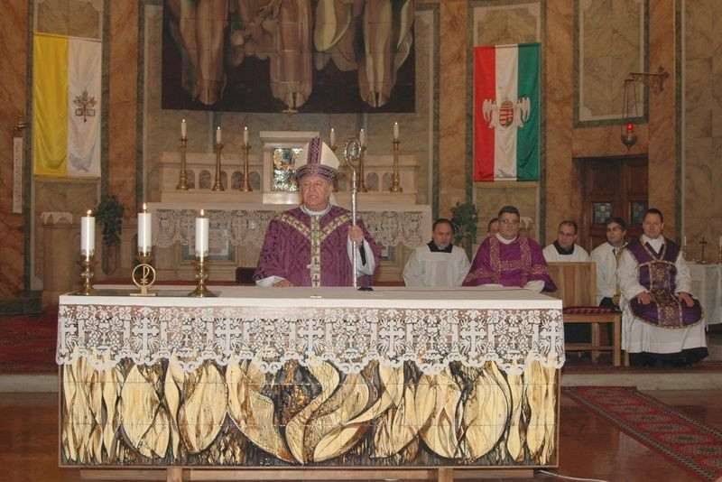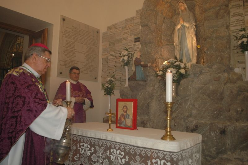 Snell György püspök a szentmise elején, rövid szertartás keretében áldotta meg a felújított kápolnát és az elhelyezésre került faoltárt.