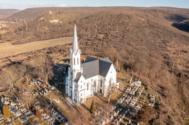 A mai templom az egykor a dombtetőn álló középkori, gótikus templom helyére épült neogótikus stílusban a 19. század végén. Az utóbbi évtizedekben jelentősebb beavatkozás az állapota megőrzésére nem történt, így az jelentősen leromlott. Tetőszerkezete, különösen a héjazat, erősen károsodott, így a fedélszék beázott, a templom homlokzati vakolata mállott, az épület a lábazatánál vizesedett. A Miniszterelnökség a Bethlen Gábor Alapkezelő Zrt.-n keresztül támogatta a templom külső megújulását, amelyre két ütemben került sor.