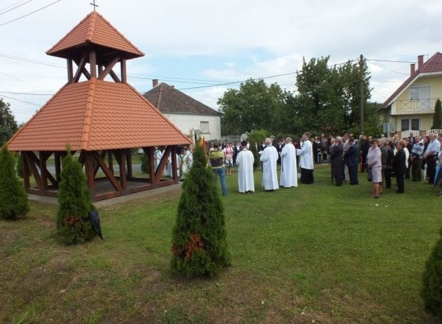 Ezzel egyidőben a településen felállított harangláb megáldására is sor került. A falubeliek kezdeményezték, hogy temetéskor az elhunyt utolsó útján szóljon a lélekharang. Ám a temetőben nem volt lehetőség az elhelyezésre, mert a hatóságok ezt nem engedélyezték. Így került a harangláb falu központjába. Az ünnepség keretében megkoszorúzták az I. és II. világháborús hősi halottak emlékművét is.