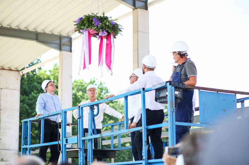 Az ünnepségen Andrásfalvy János tartományfőnök és Soltész Miklós államtitkár tette a bokrétát egy emelőszerkezeten állva a műhelycsarnok tetejére, s a rendezvény alkalmával időkapszulát is elhelyeztek az építményben.