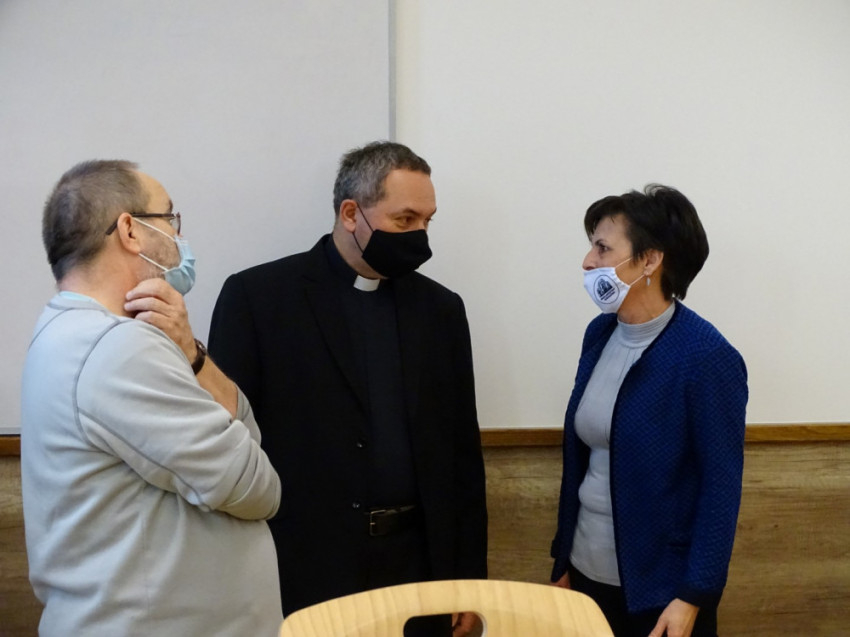 Az új iskolakezdést megelőző napon, január 7-én a kivitelező és a fenntartó részére szervezett épületbejáráson Felföldi László pécsi megyéspüspök is jelen volt, aki a beiktatását követő napon látogatott el az intézménybe.