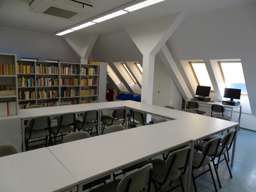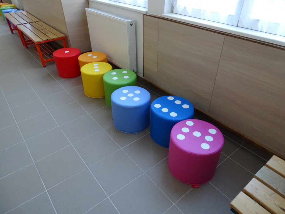 A kooperatív oktatásra berendezett terem, amely a művészeti nevelésnek (dráma, énekkar) is ideális helyszíne, különleges formáival, színeivel várja a diákokat.