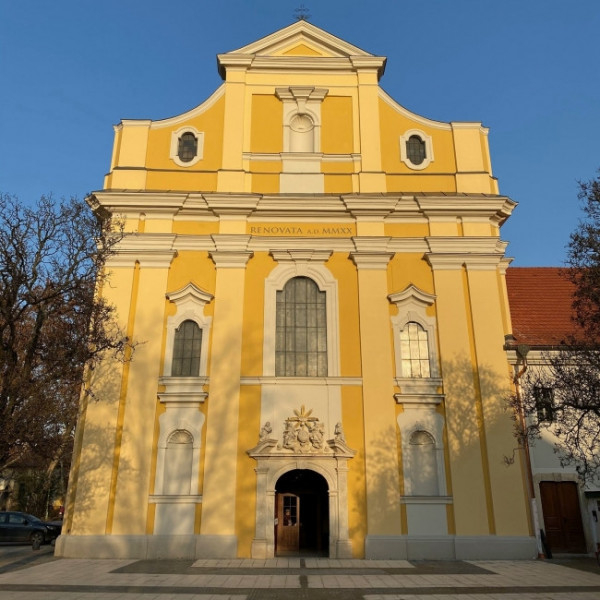 A templom és az egykori ferences rendház története 1718-ra nyúlik vissza, akkor kezdődött meg a Szentháromságnak szentelt kápolna építése, ami a mai nagytemplom szentélye. Mivel ezekben az években a város lakossága rohamosan növekedett, a kápolnát bővíteni kellett. Az építés tervezésével és lebonyolításával Giovanni Carlone egri építőmestert bízták meg. Az érett barokk stílusú templom – mely műemléki védettséget élvez – végül 1754-re épült fel, mai formáját a 19. században nyerte el.
