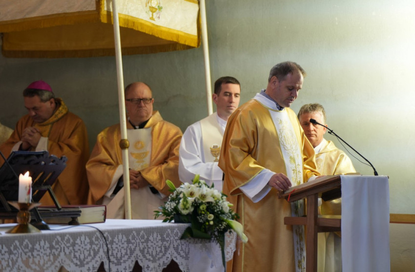 Ünnepi szentbeszédében Felföldi László püspök kiemelte: a véméndi templom tetőszerkezetének felújítása óriási üzenetet közvetít számunkra a munkálatokhoz kapcsolódóan megszületett összefogásról. A családban, az Egyház közösségében és a társadalomban lévő problémákat látjuk és megéljük mindennapjainkban. A hibákat feltárjuk, meg is fogalmazza mindenki, hogy gond van, de mindig valami különleges, külső dologtól reméljük a megoldást. A véméndi közösség tagjai nem külső megoldásra vártak az Egyháztól, az államtól, hogy majd megoldják a templomukban keletkezett problémát, hanem az itt élők összefogva keresték, hogy kit vonhatnak be, aki a segítségükre tud lenni a megoldásban.