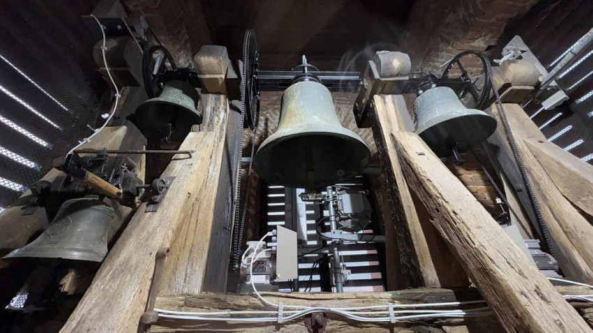 A munkálatok során megújult az 1532-ben öntött, 494 éves, 280 kilogrammos történelmi harang. A szakemberek egyenes járommal (hagyományos, vízszintes tartógerenda, amelynél a forgástengely a felfüggesztési pont felett van, lassabb, méltóságteljesebb lengést biztosítva – a szerk.) és repülőnyelvvel (tisztább hangzást biztosító, a harangtestnél gyorsabban kilendülő, precíziós lengőnyelv – a szerk.) látták el, a pontos működésről pedig motoros meghajtás gondoskodik, amely hosszú távon biztosítja a biztonságos és kíméletes működtetést.
